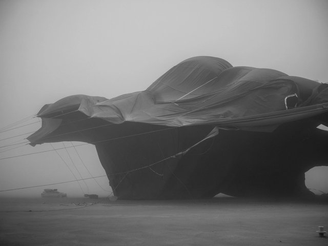 The support structure of “Black Cloud”, a 100ft-tall assemblage of 45 interconnected forms, was broken in half by the hurricane-force winds that swept across the Black Rock Desert