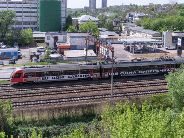 The work will travel across Ukraine, emblazoned across a passenger train