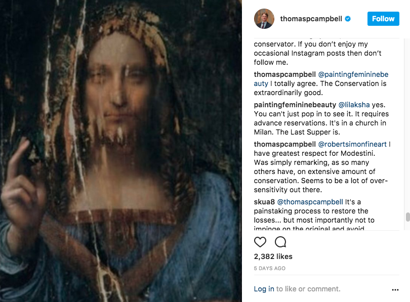 Thomas Campbell posted an image of the Salvator Mundi before conservation, triggering a row with its former co-owner Robert Simon and Christie’s Loic Gouzer