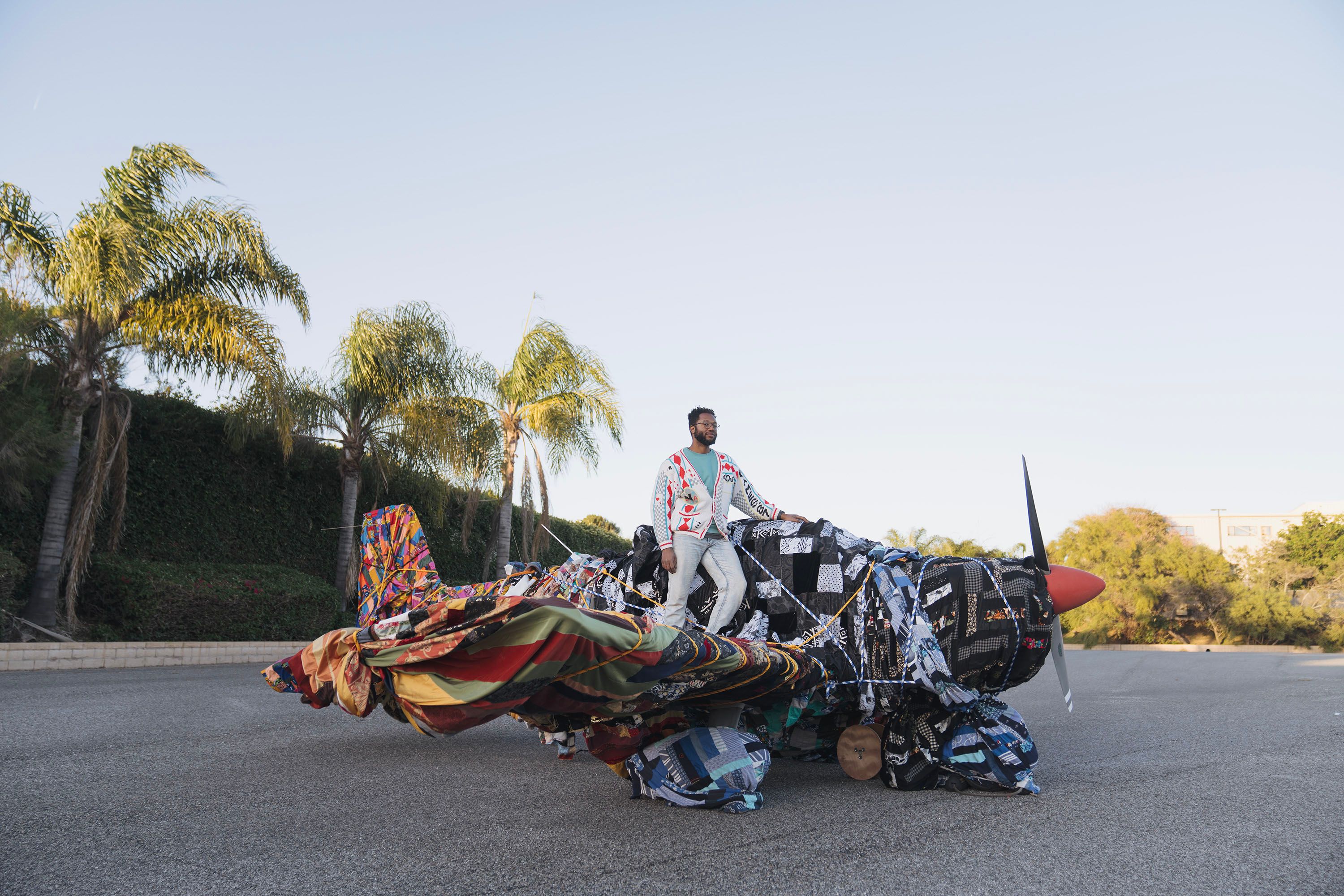 Basil Kincaid's sculpture at the fair incorporates textiles the artist has sourced from St Louis, Ghana and elsewhere since 2016