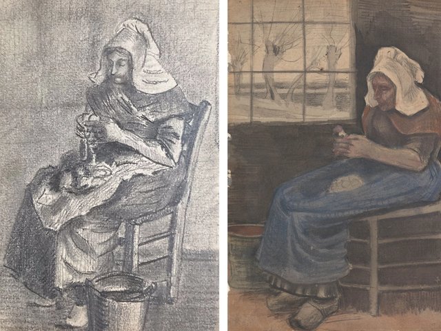 Discovered: a sketch by a pastor’s daughter, who sat beside Van Gogh when they both depicted a woman peeling potatoes