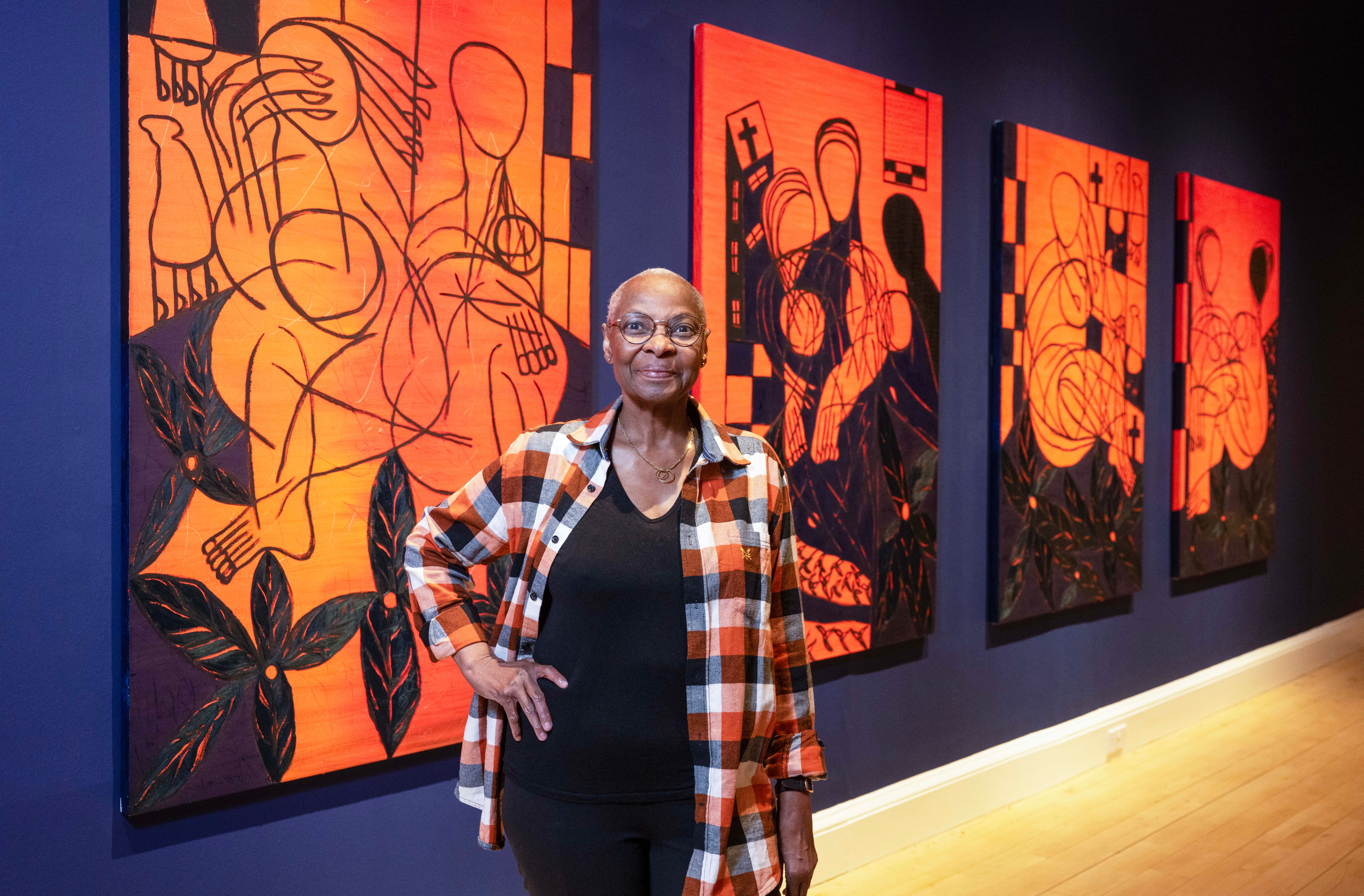The Tanzania-born artist's retrospective features works kept in storage for four decades