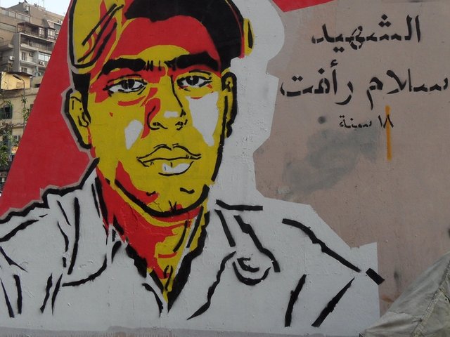 Leaving Abla’s crowded opening, I walked past smokers and Nescafé drinkers in the courtyard. I looked at the plaque on the wall commemorating 1997, when then-President Hosni Mubarak inaugurated Ofok Gallery. The boxy modernist gallery is an annex to the Mohamed Mahmoud Khalil Museum, which holds treasures by Degas, Gauguin, Manet, Monet, Pissaro, Renoir, Rodin and van Gogh. In August 2010 robbers snatched van Gogh’s Poppy Flowers (1887) from the museum. The painting has never been recovered, and the museum has never reopened. Six months after the burglary, Mubarak was toppled. The ousted president’s name remains on the bronze plaque.