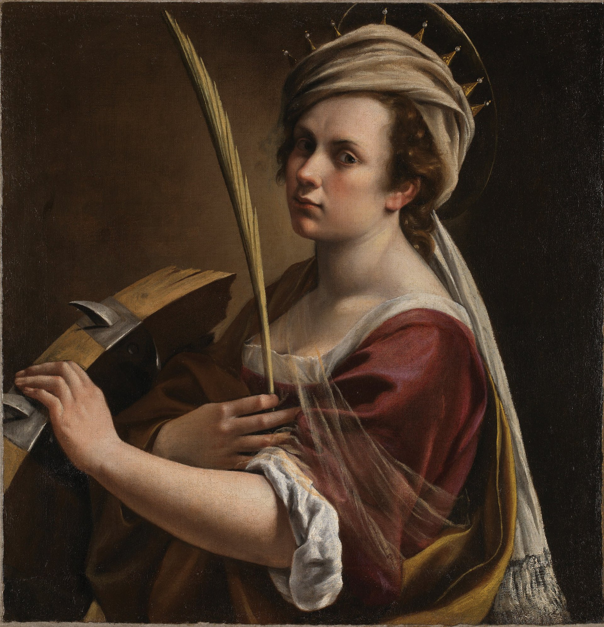Restorers discovered that a tracing of the National Gallery's earlier Self-Portrait as Saint Catherine of Alexandria (1615-17) can be superimposed on parts of the Uffizi work © National Gallery, London