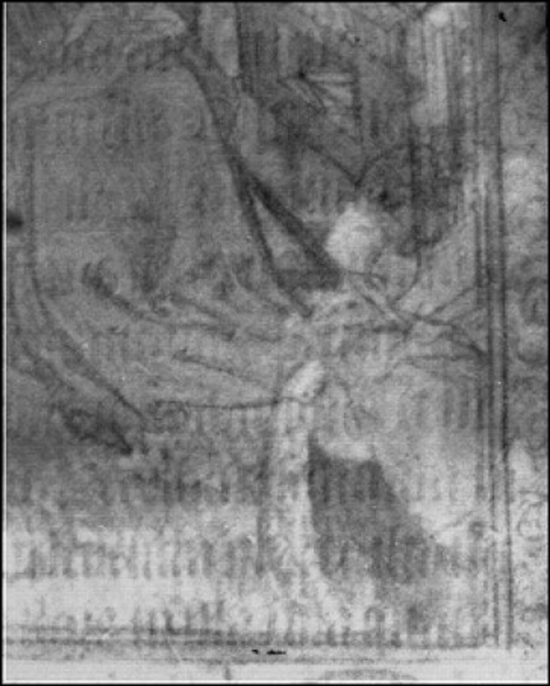 This short-wave infrared image through the reverse of folio 20 showings the original underdrawing, with the Virgin’s robe reaching as far as the margin, the kneeling figure of first wife Yolande with large headdress, and without the figure of St Catherine Photo: © The Fitzwilliam Museum, Cambridge