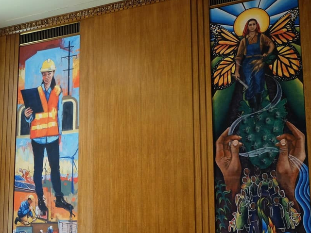 Depression-era murals in a Minnesota city hall covered over with new works reflecting a more diverse community