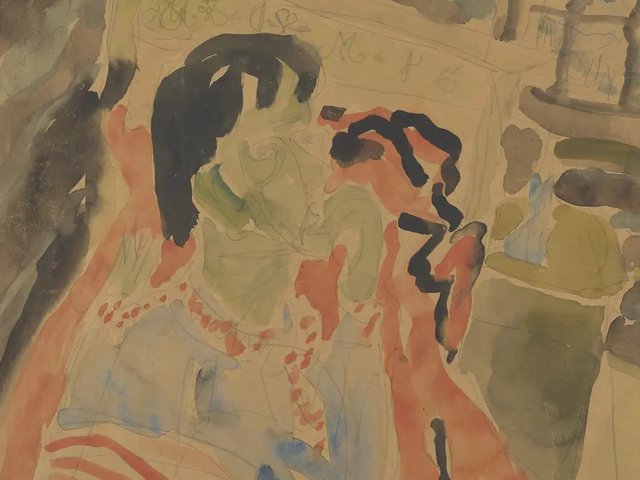The work, Nude by Karl Schmidt-Rottluff (1914), was appropriated by the Nazis in the 1930s, during the flight of Halpin’s grandparents, Alfred and Tekla Hess, from Germany.
