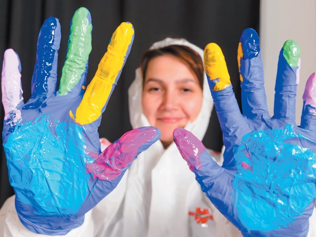 His work for the Shame Shouldn't Be A Symptom campaign have a similar DIY feel, inlaying colourful swirls of paper, or alternative views of his sitters to create shifting, thoughtful, complicated portraits. “Shame makes me feel like parts of myself are not good enough and are not meant to be shown to the world. But that's not true!” says Made of Millions board advisor, advocate and mother Windsor Flynn, who has obsessive compulsive disorder. “We are all multifaceted. All our parts have to be nourished and talked about, otherwise the bad ones get worse.”
