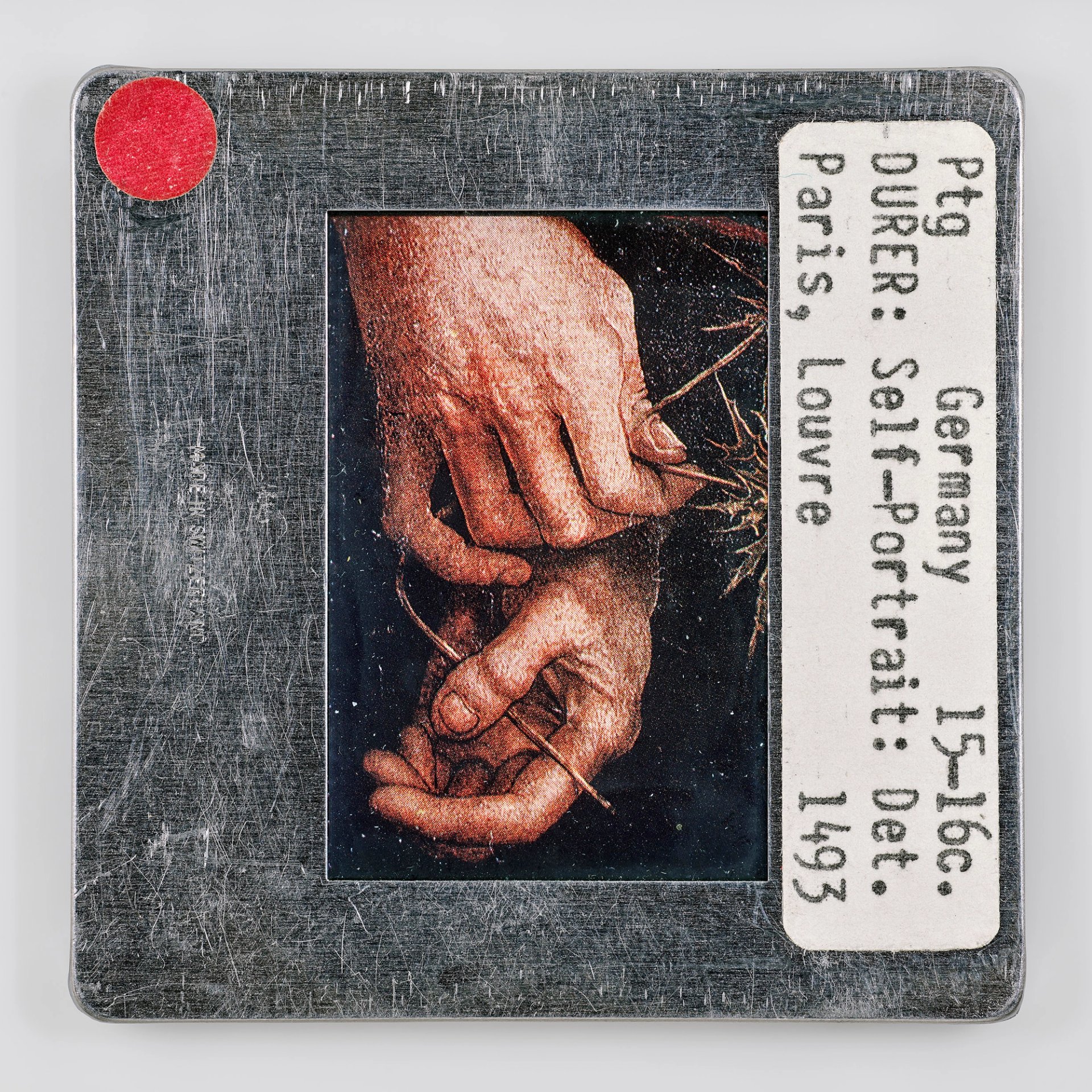 Sebastian Riemer's Ptg Germany 15-16c. Dürer: Self-Portrait: Det. Paris, Louvre 1493 (2019) Courtesy Galerie Dix9, Paris