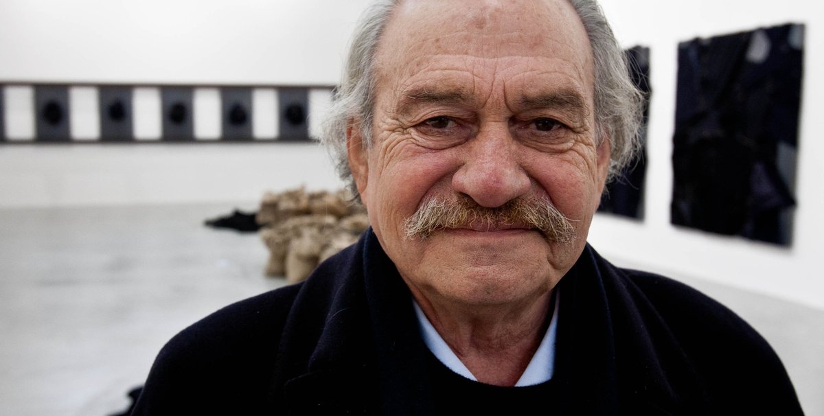 Kounellis was known for his use of lowly, often earthy materials in his work—coal, jute bags, steel, piles of stones—which tied him to the Arte Povera artists who used similarly “poor” media. The artist took part in the Venice Biennale for the first time in 1972 and became a regular contributor to the international exhibition. Over the years he has been the subject of solo exhibitions at international museums including the Museum of Cycladic Art, Athens (2012), Tate Modern, London (2009), the Neue Nationalgalerie, Berlin (2007), the Albertina, Vienna (2005), the Museo Nacional Centro de Arte Reina Sofia, Madrid (1996), the Castello di Rivoli, Turin (1988), the Whitechapel Art Gallery, London (1982) and the Stedelijk Van Abbemuseum, Eindhoven (1981).