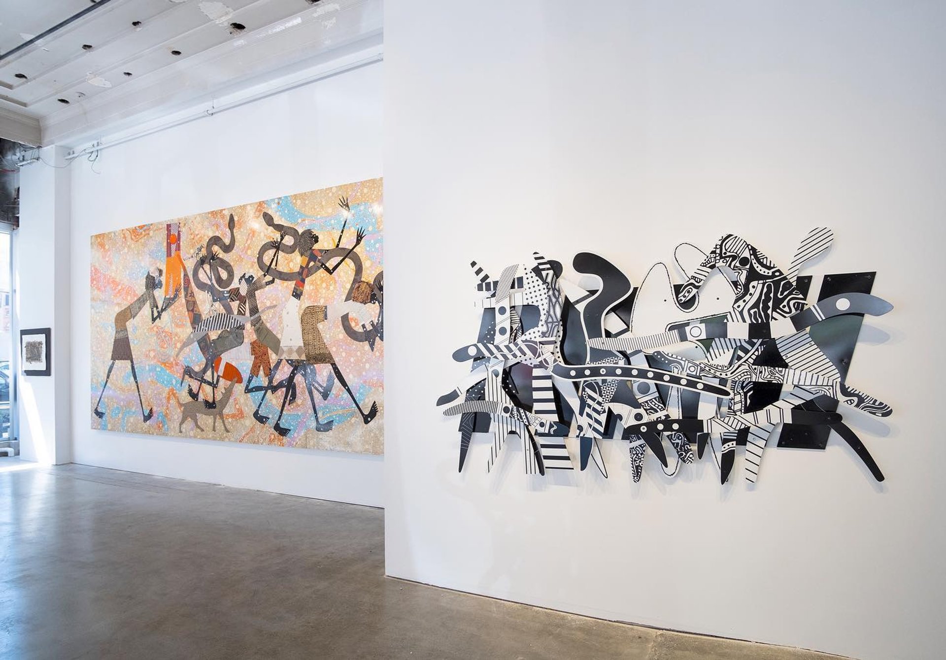 An installation view of Charles McGee: Still Searching, at Detroit’s Library Street Collective