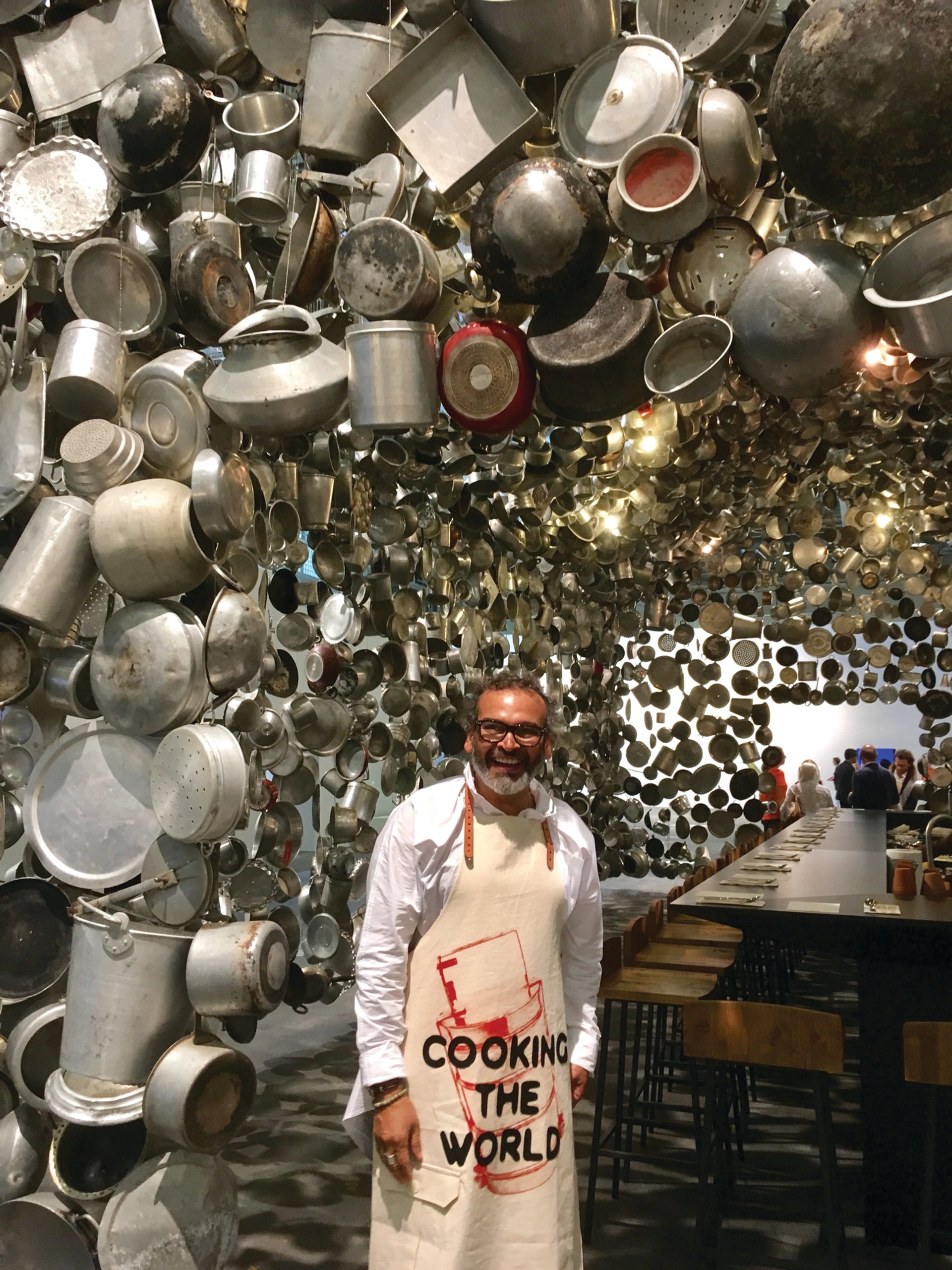 Fed up with fondue? All rösti-ed out? Then head over to Unlimited at Art Basel, where Subodh Gupta is dishing up a delectable Indian feast from inside one of his giant sculptures made from old cooking utensils. “I love cooking, and food is my passion,” declares the Delhi-based artist, whose gastronomic performance Cooking the World is taking place four times a day throughout the fair. Visitors can choose from a menu of dishes reflecting the cultural and religious diversity of the Indian subcontinent. These are cooked and served by Gupta and a band of helpers who first sprinkle the happy diners with rosewater. “Offering and serving a meal is an act of inclusion and community, and I like to know that my food will be entering your DNA,” Gupta says. The entire structure, including the cooking facilities, is for sale at €800,000, with the stipulation that any new owner must cook one of the dishes on Gupta’s menu. Booking is essential, at cookingtheworld.eventbrite.com
