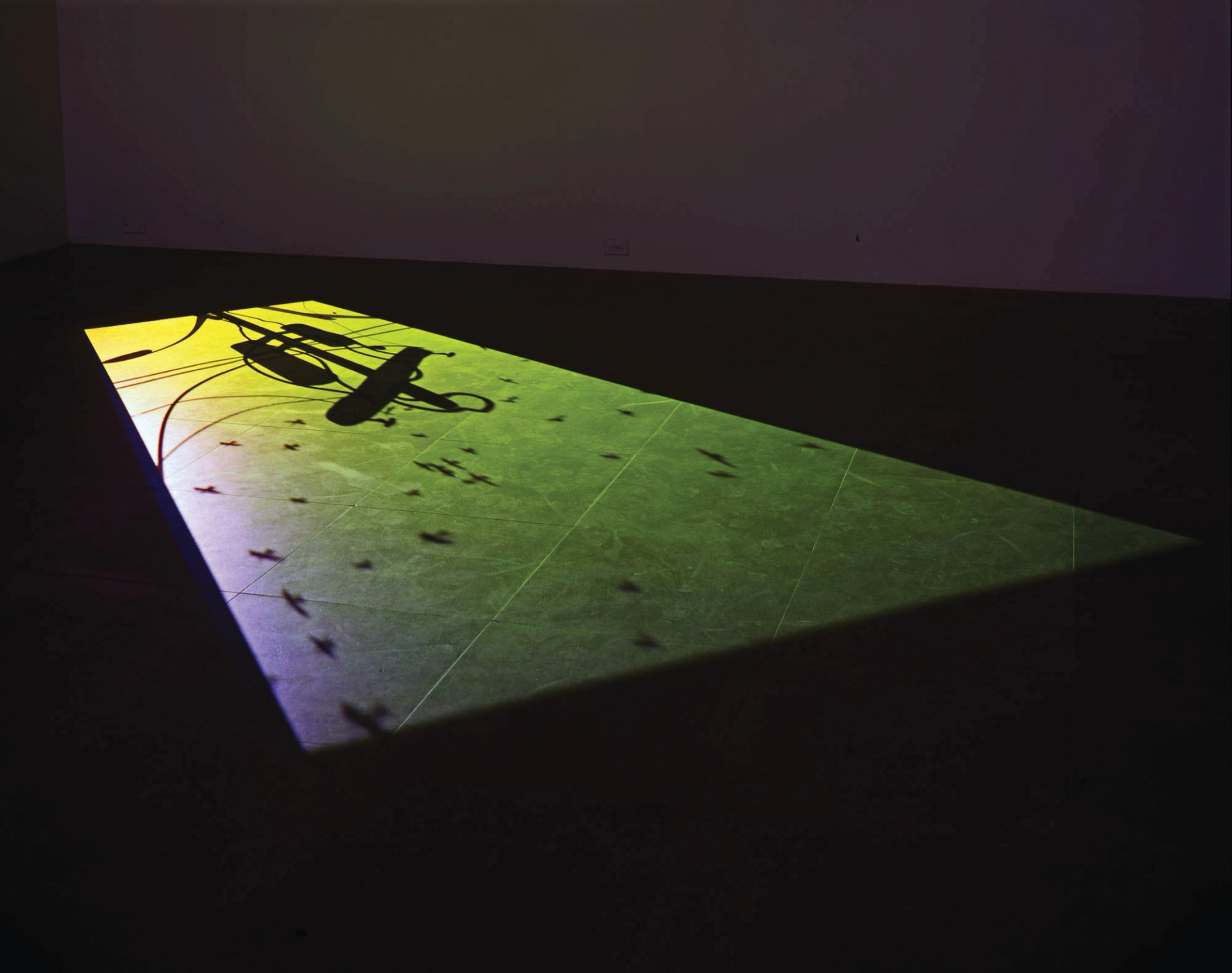 The multidisciplinary artist Paul Chan says the 9/11 terrorist attacks have deeply inflected works like The 7 Lights (2005-07), a series of animations created with obsolete computer software that explore themes such as faith, technology and politics. In the earliest work in the series, 1st Light, currently on view at the Museum of Modern Art (MoMA), the shadows of abandoned vehicles, cell phones and other debris rise while apparitions of bodies fall from the sky; in the title, “Light” is struck out, MoMA notes, “suggesting its impending absence”.