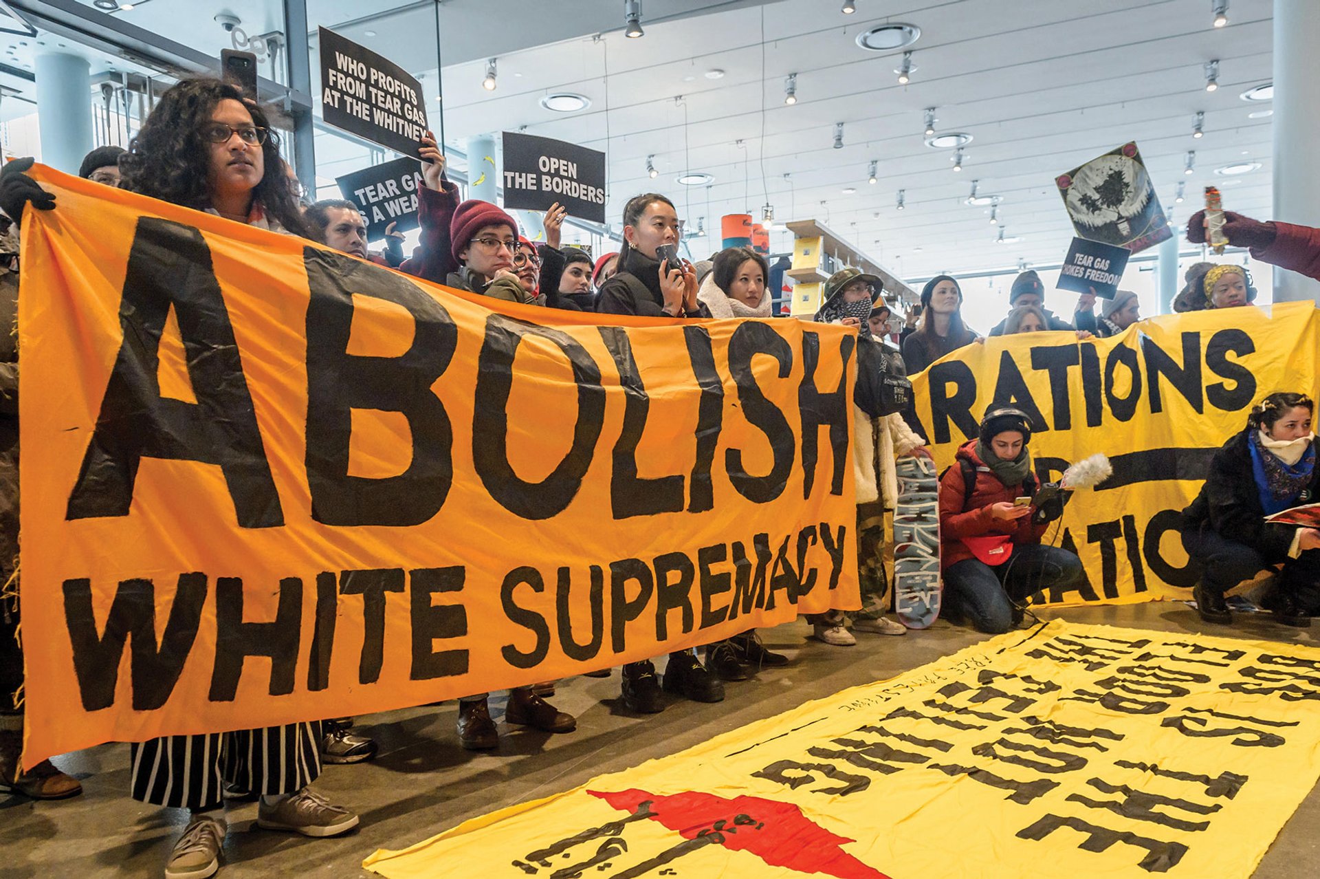 Despite its more progressive curatorial approach, MoMA was not immune from the rising tide of activism targeting museum trustees, donors and corporate sponsors perceived to be “artwashing” ill-gotten wealth. Protesters rallied at the museum’s grand opening party to call for the resignation of trustees Laurence Fink and Steven Tananbaum due to their companies’ respective investments in private prisons and Puerto Rican debt.