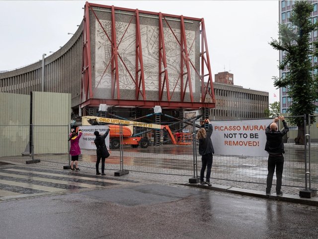 The MoMA letter published in the Norwegian press states that “we are writing to express our grave concern regarding the approved demolition of the Y-block governmental building… the demolition of the building complex would not only constitute a significant loss of Norwegian architectural heritage, but it would also render any attempt to salvage or reposition Picasso’s site-specific murals elsewhere unfortunate.”