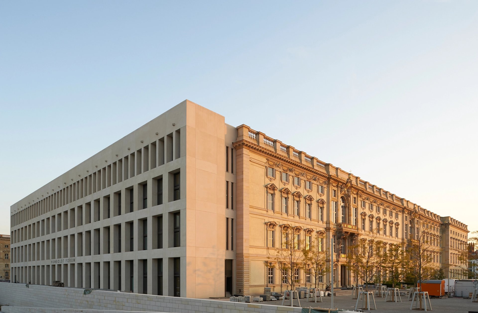 With construction nearly completed despite delays caused by the pandemic, the building will be open for visitors from 17 December. The main focus at this stage is on the architecture itself, with video projections and sound installations accessible in the courtyards and a café on the first floor. Presentations about the Humboldt brothers and the history of the site will be on view on the ground floor and in the basement.