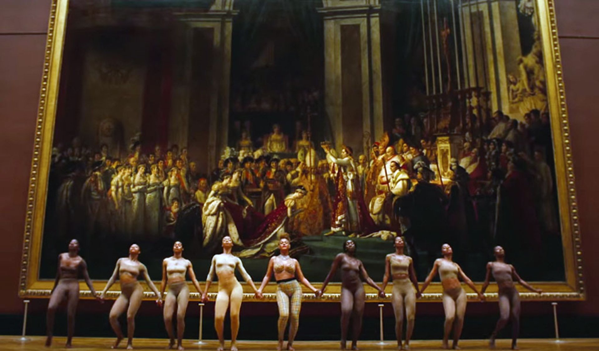 Screenshot of Queen Bey's dance number in front of The Coronation of Napoleon I and the Crowning of the Empress Josephine. Beyoncé/YouTube