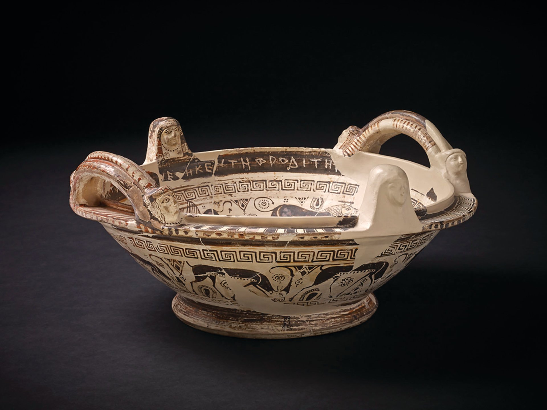 This Greek bowl from the late seventh century BC was found in the sanctuary of Aphrodite at Naukratis, the sister harbour town of Thonis-Heracleion. The British Museum has been excavating at the site, which was first dug by the English Egyptologist William Flinders Petrie in 1884, since 2012. It is trying to change the long-held perception that the city was an isolated Greek colony, says the curator Aurélia Masson-Berghoff. “The problem with this historic excavation is that it put so much focus on the Greek presence in Naukratis that they misinterpreted the site,” she says. “Yes, it was a Greek trade port, but it was also an Egyptian city. When Alexander the Great arrived in Egypt [in 332BC], there already had been centuries of interaction between the Greeks and Egyptians.” As part of its research, the museum has created an online catalogue of more than 17,000 objects found in Naukratis, now dispersed in 70 collections worldwide.