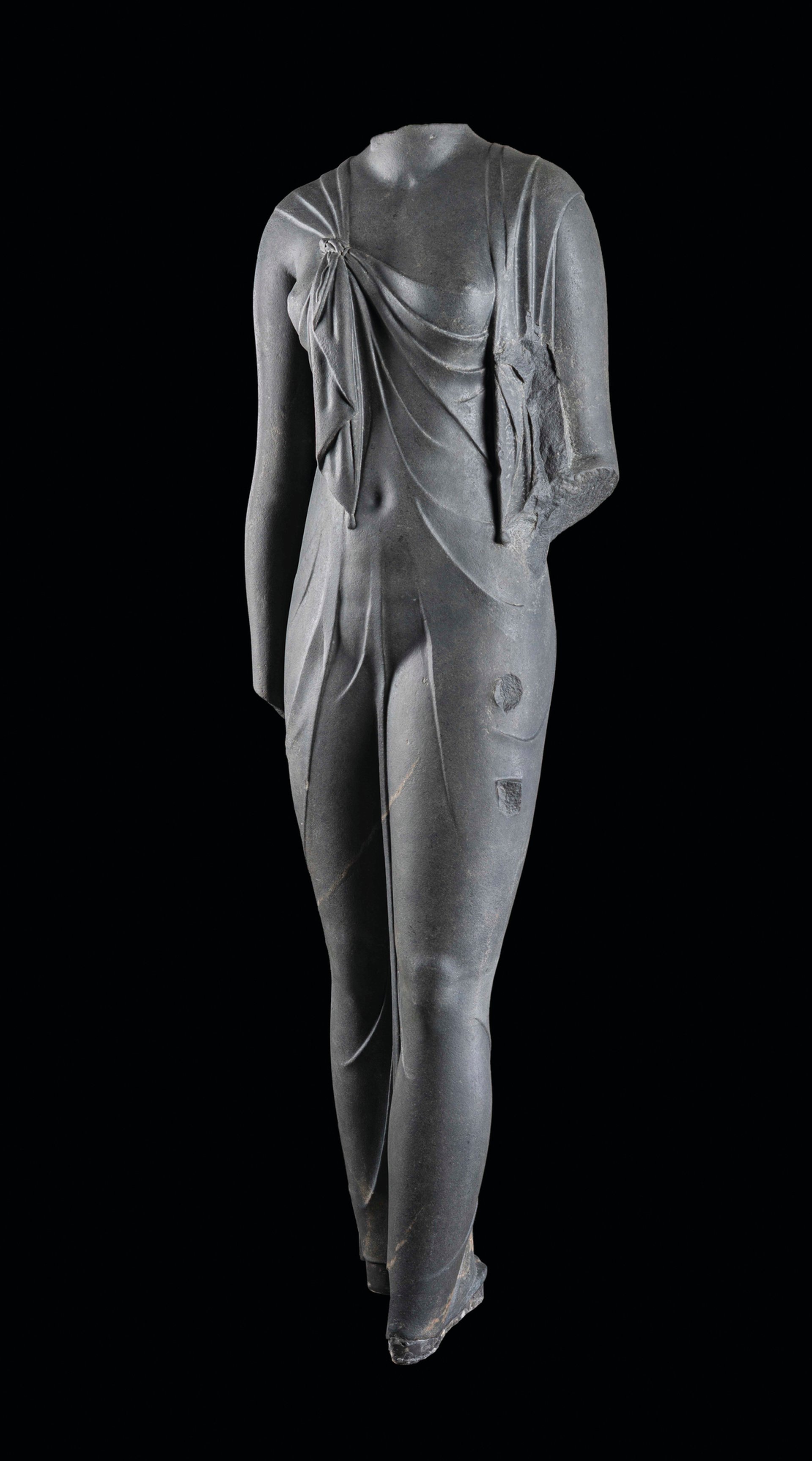 Goddio calls this slightly larger than life-sized statue of the Ptolemaic queen Arsinoe (probably Arsinoe II), who emerged from the sea in wet, transparent clothes, as “one of the most beautiful statues in the world”. The rendering of the flesh of this Greco-Egyptian piece, which dates to the third century BC, is comparable to that of the fifth-century BC statue of Venus Genetrix by the Athenian sculptor Kallimachos. The sculpture, made of diorite, was found in Canopus.