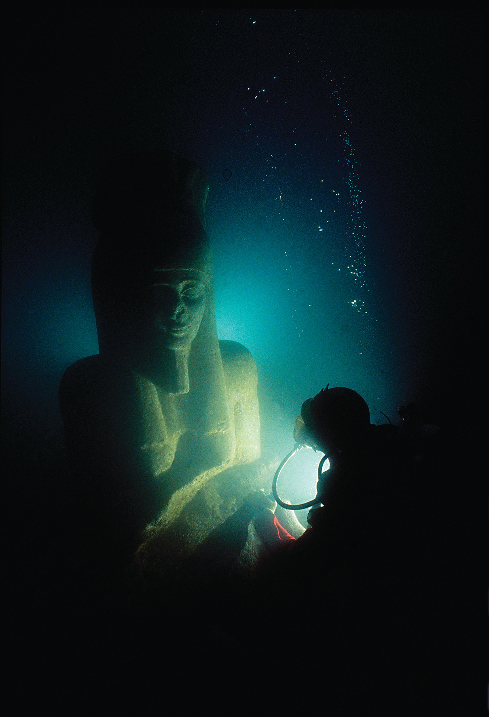 The Egyptian government tasked Goddio with surveying Abukir Bay, on the Nile delta, in search of what was then believed to be three cities reclaimed by the sea: Canopus, Thonis and Heracleion. In 1999, Goddio’s team found Canopus. Two years later, they discovered a stele (tablet) that Goddio says “solved a 2,000-year-old mystery” that not even the ancient Greek historian Herodotus could unravel: Thonis and Heracleion was, in fact, one city and not two.