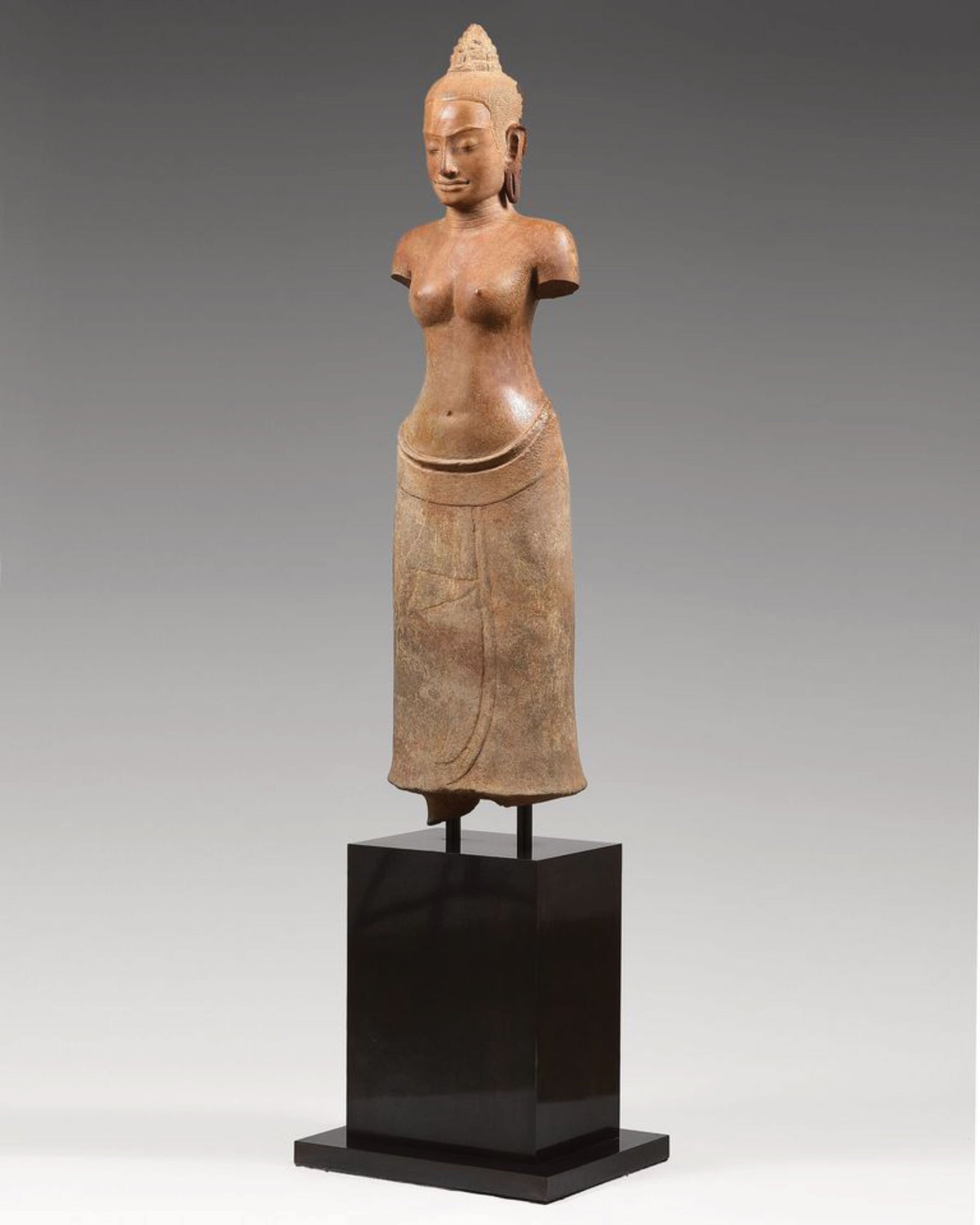 A sandstone female figure from the 12th century is among the objects being returned to Cambodia Photo: Matthew Hollow, Royal Government of Cambodia