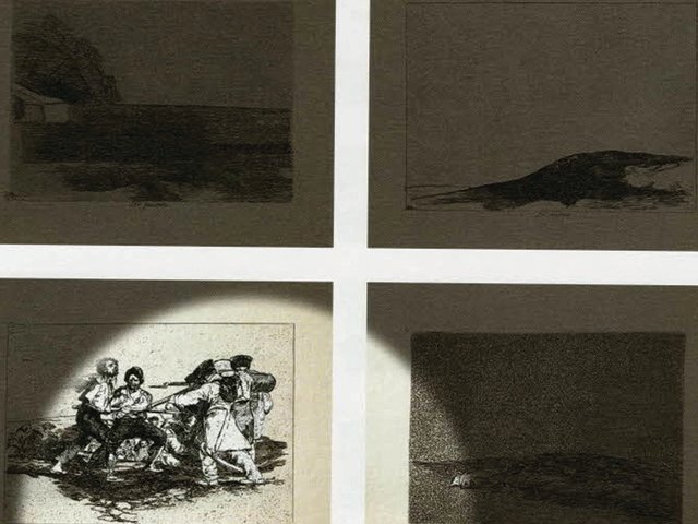 The brothers have also reworked three full sets of Goya’s series The Disasters of War (1808-14). Each set includes 80 prints, with 240 works transformed in total. The pair have superimposed images of artists such as Jackson Pollock, clowns’ heads and other ghoulish features on to the etchings, which have been reworked in various media (The Disasters of Everyday Life, monochrome collage set; The Disasters of Yoga, glitter set; and The Disasters of War on Terror, watercolour set).