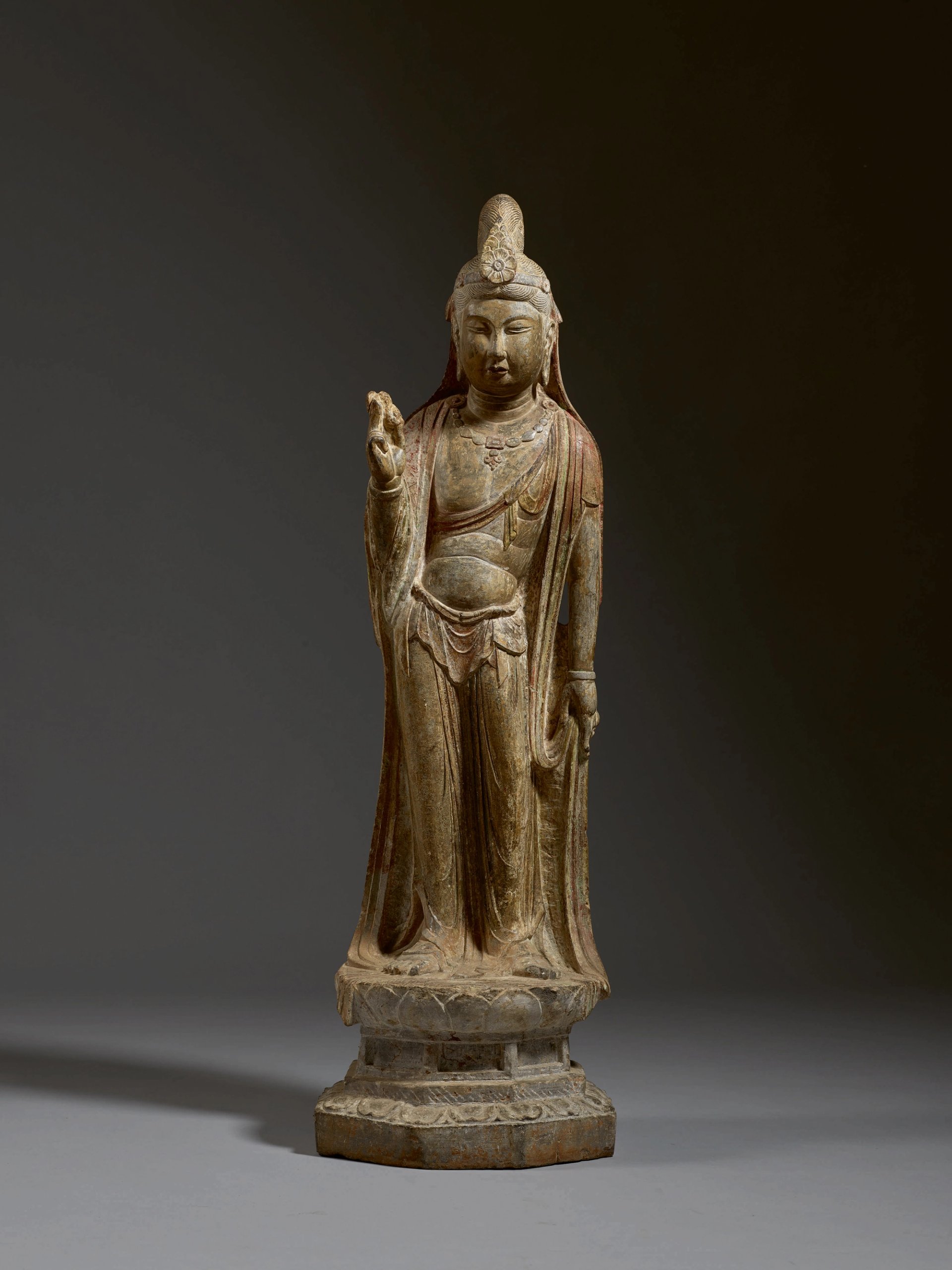 "The market for Asian art, and Chinese art in particular, has remained extremely strong in New York throughout 2018,” says Christina Prescott-Walker, the director of Asian art at Sotheby's in New York. A rare painted limestone figure of a standing bodhisattva from the Tang dynasty fetched $4.3 million during Sotheby's Asia Week sales, far surpassing its high estimate of $2.5 million. Courtesy of Sotheby's