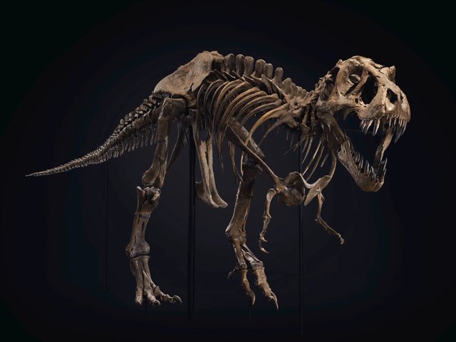 The real star of the show was still Stan, though. Offered as the last lot in the two and a half hour sale, the nearly complete 67 million-year-old Tyrannosaurus rex skeleton from South Dakota inspired nearly ten minutes of deep bidding, mostly from European clients. It sold for $27.5m ($32m with fees)—more than four times its estimate—to a buyer on the phone with James Hyslop, the UK-based head of natural history at Christie’s, who has been working to bring Stan to the auction block for two years. The result smashes the $8.4m that Sotheby’s fetched for a T-Rex named Sue in 1997, which now resides in the Field Museum in Chicago.