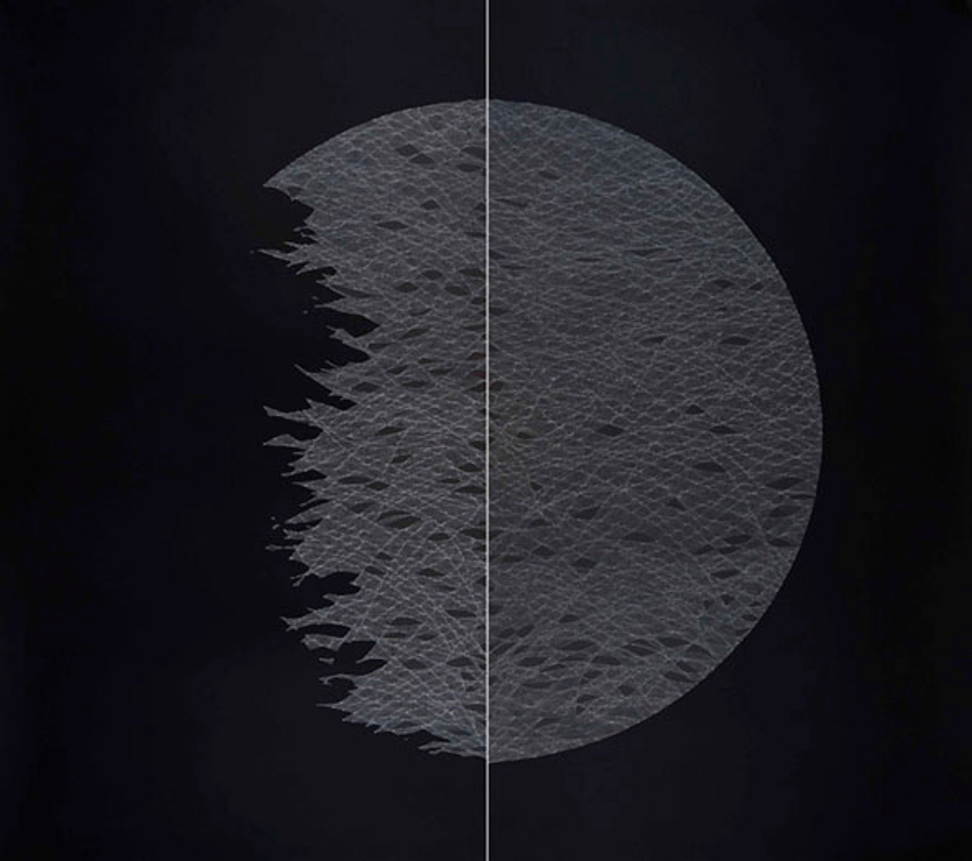 Khan’s exhibition at Manchester Art Gallery is his first solo show in a museum. The Lahore-based artist creates meticulous works, consisting of microscopic dashes and minuscule circles, which invite inspection and analysis. Oracle (2017) is a large-scale oval composed of diminutive white circles knitted together while My small dancing particles (2017), hung in a room as a single piece, is a web of delicate white strands created from archival ink.