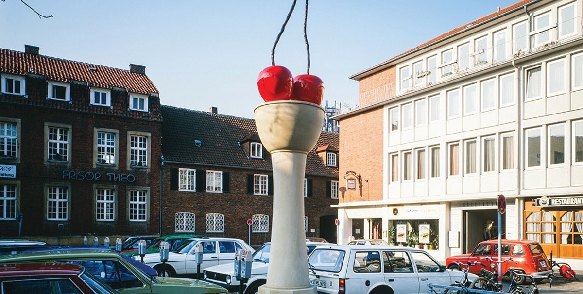 The plans for Marl are still be developed but the German artist Thomas Schütte has offered to create a sibling to his Kirschensäule (Cherry Column), installed for the 1987 edition of SPM, which is now a permanent fixture. At the time he had suggested creating a related column featuring three chunks of melon—this may now be realised in Marl. There are also hopes that the Italian artist Lara Favaretto will produce the next in her series of Momentary Monuments in both cities.