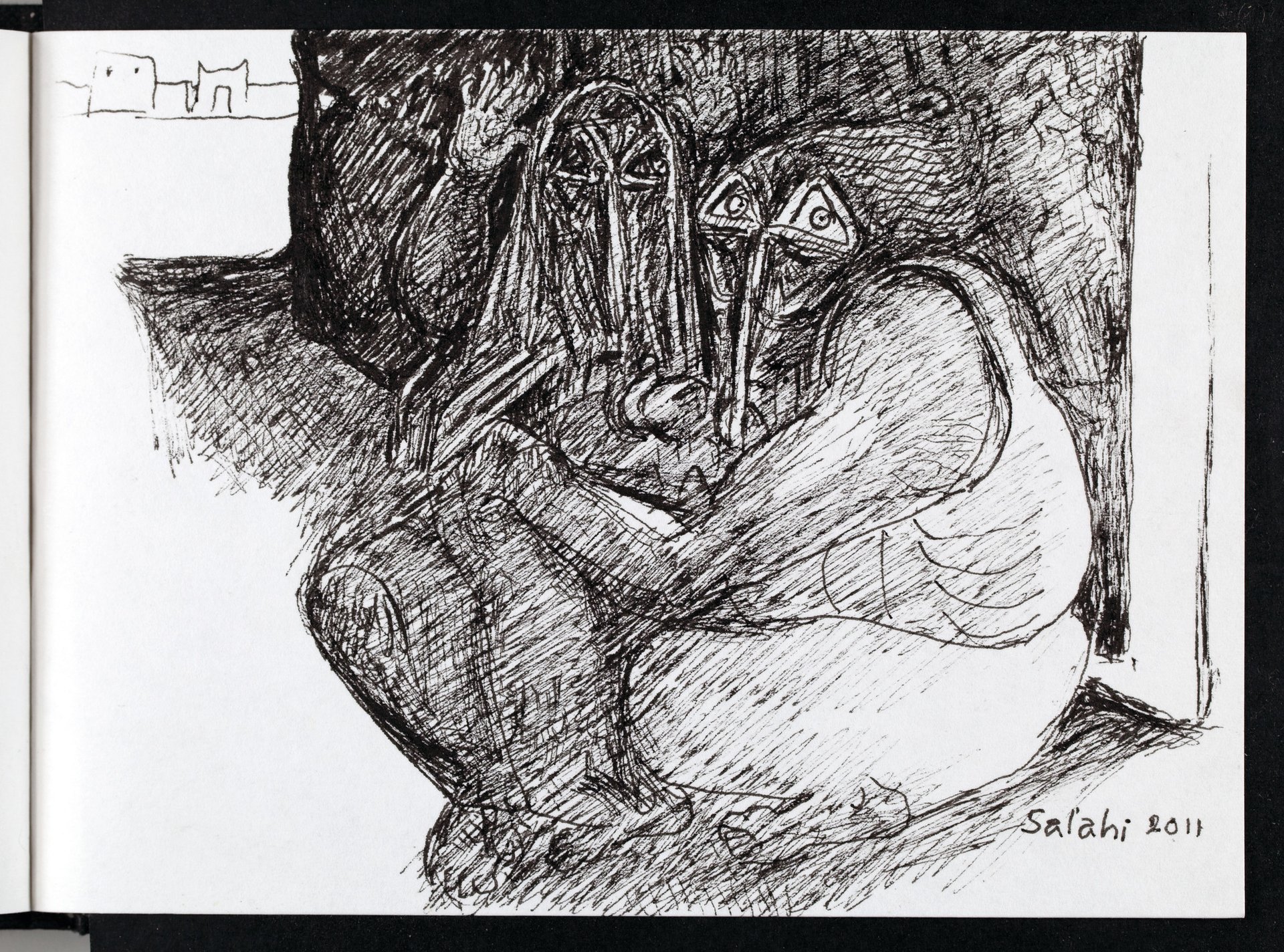 But, as the Arab Spring unfolded, revolution gave way to violence and El-Salahi’s sketches became darker: drawings like Repeating the whirlwind (2011) reflect a sense of foreboding. “In the beginning it was great to have a revolt against the tyranny, but [the series] shows mess upon mess [and a] complete lack of hope,” El-Salahi says.