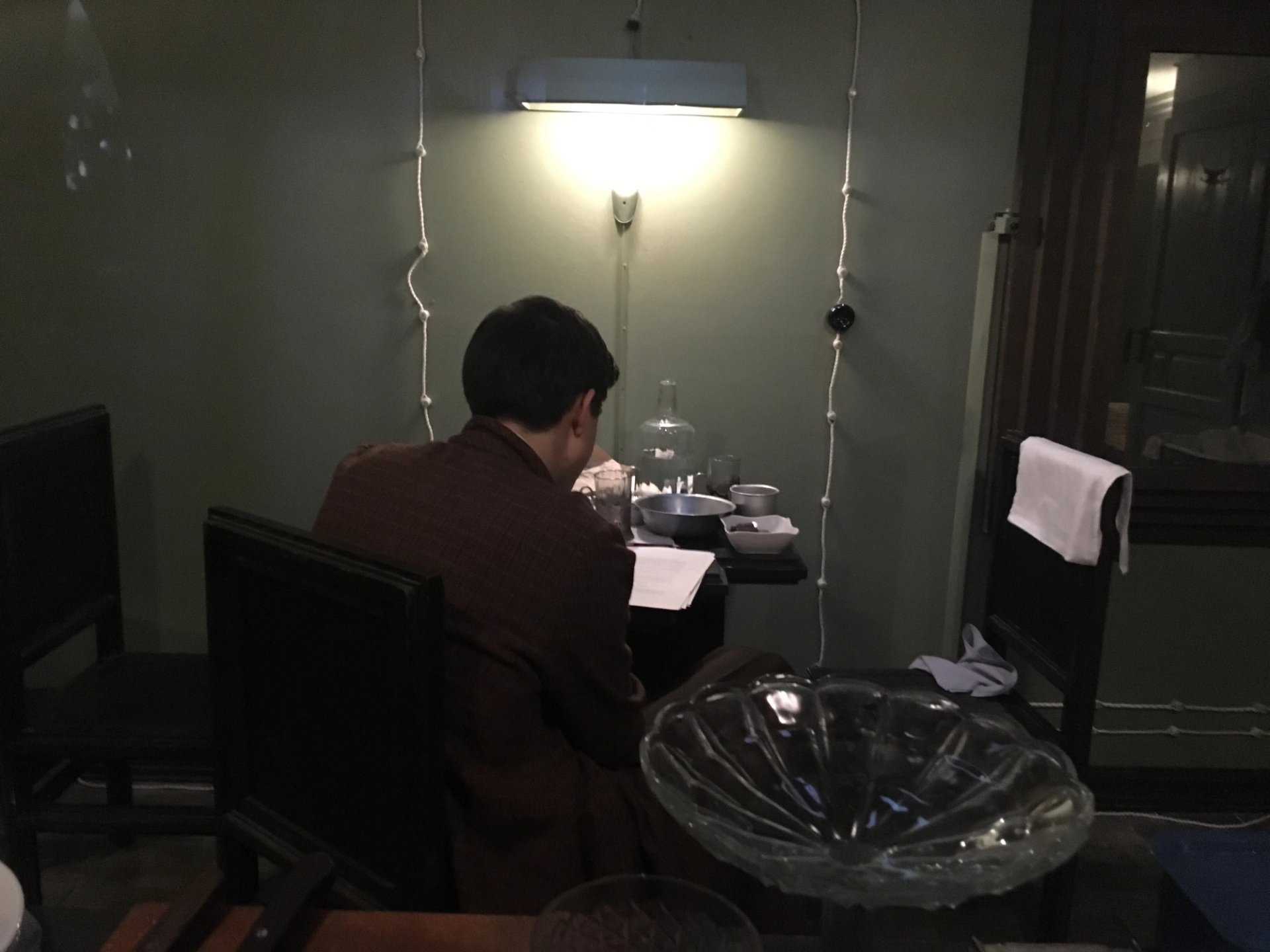 To visit the display at the Théâtre de la Ville (a multi-faceted installation over four floors featuring Soviet living quarters, a concert hall, a shaman, a movie theatre and a canteen), a “visa” from the General Consulate of DAU is required, which can be bought online and retrieved from a booth on Châtelet square. The installation is based on an institute that Khrzhanovsky created in Kharkov, Ukraine, between 2009 and 2011 where scientists, artists and philosophers lived in an atmosphere that reconstructed Soviet life from 1938 to 1968.