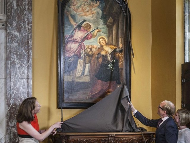 The altarpiece goes on show with a group of works by Flemish Old Masters who admired and were influenced by Tintoretto, including Rubens, Van Dyck and Maerten de Vos. Two other paintings, by Titian, have also returned to Venice for the exhibition. They are Jacopo Pesaro presenting Saint Peter to Pope Alexander VI (1503-06), which has been loaned by the Royal Museum of Fine Arts in Antwerp, and Portrait of a Lady and her Daughter (around 1550-60)—now accepted to be of Titian’s mistress, Milia, and their daughter Emilia.