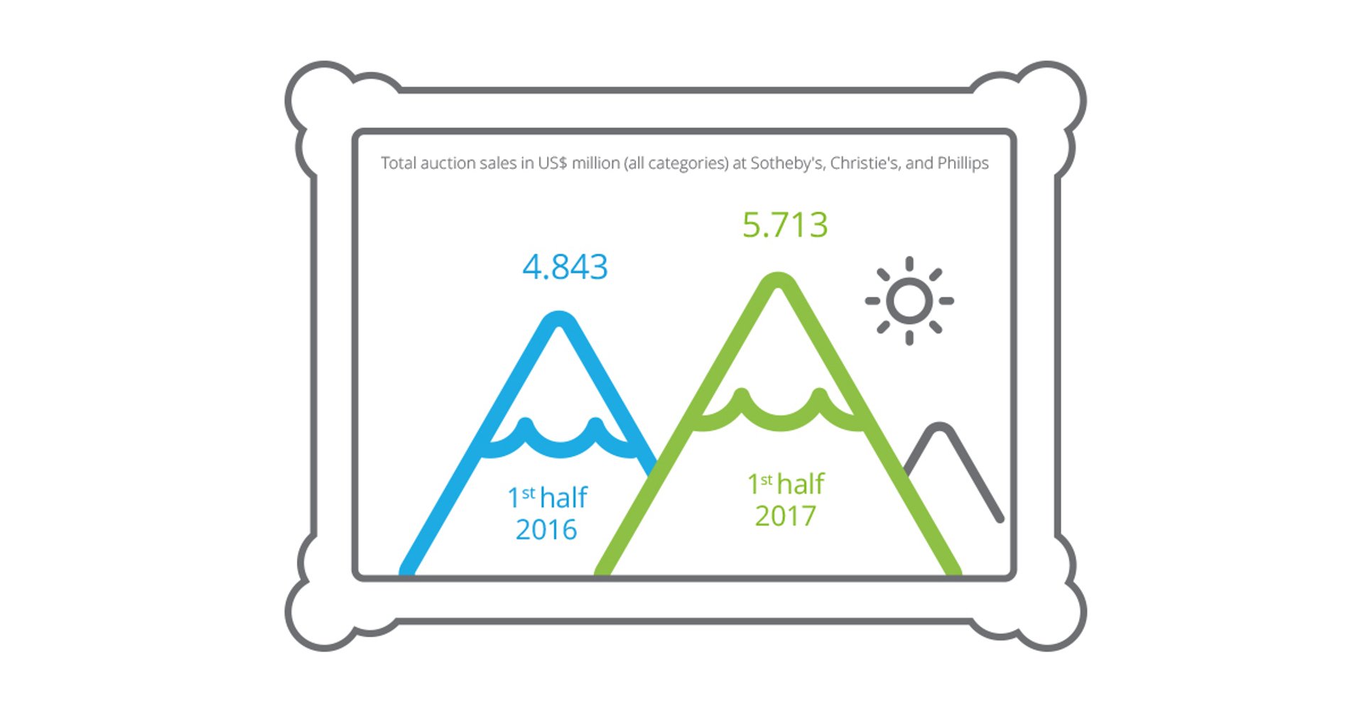 Another section points to an apparent paradox of the 2017 art market. Although the private market is healthy and sales at Christie’s, Sotheby’s and Phillips have picked up by $1.08 billion, compared with the same time last year, market confidence (as measured by ArtTactic’s “confidence indicator”) declined 13.4% during the first half of the year. While that skittishness was surely the product of many factors–including geopolitical unrest and the auction houses’ renewed reliance on financial guarantees to win prime material–the report’s authors write, “the bigger question is whether we are starting to experience a shift in the way that the global art market behaves”, and ask: “Could art market volatility be set to increase as art buyers become more investment-oriented and increasingly amenable to short-term investment horizons?”