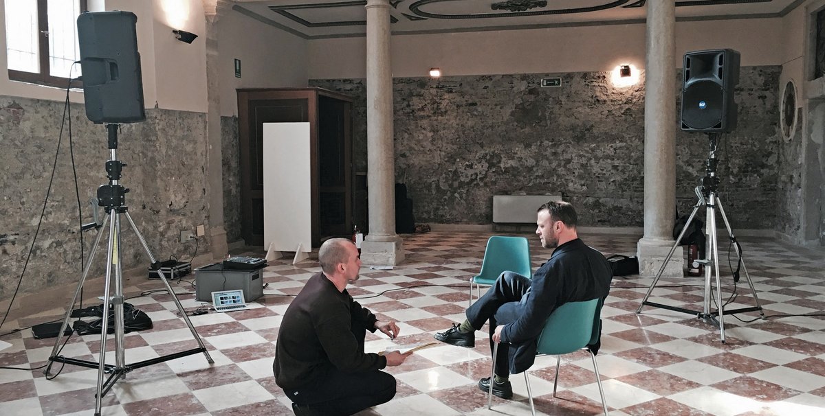 Our second recce in Venice and a chance to meet with the extended team, including James’s technical collaborator, Matt Fitts. We order in sound equipment and test the acoustics in the church—it’s our only chance to experiment before we return to Venice to install the exhibition, so it’s vital that we leave confident that the space can hold James’s ambitions for the sound installation he’s developing.