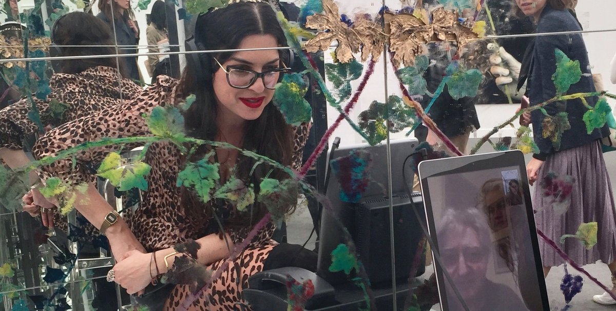 On the Athens-based Breeder gallery’s stand is a mirrored installation by the artist Chrysanne Stathacos, originally presented at Andrea Rosen Gallery. Called 1-900 Mirror Mirror (1993) and priced at $45,000, the work requires viewers to sit in a metal seat to see their faces reflected infinitely by the mirrored walls. After picking up a then-cutting-edge but now-outdated videophone, they are asked: “Do you have a question for the future?”, and are then given a tarot-card reading. The installation, which was still available to buy on Friday, forces people to consider their fate and mortality. Readings will be held every day during the final two hours of the fair.