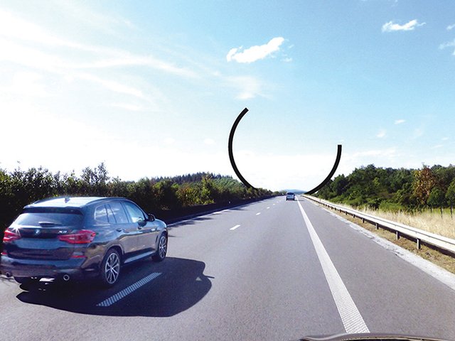 The 250-ton steel sculpture, called Arc Majeur, has been installed on either side of the E411 motorway in Lavaux-Sainte-Anne in Belgium between Namur and Luxembourg. Motorists are under the impression that they are driving through the all-encompassing sculptural arc.