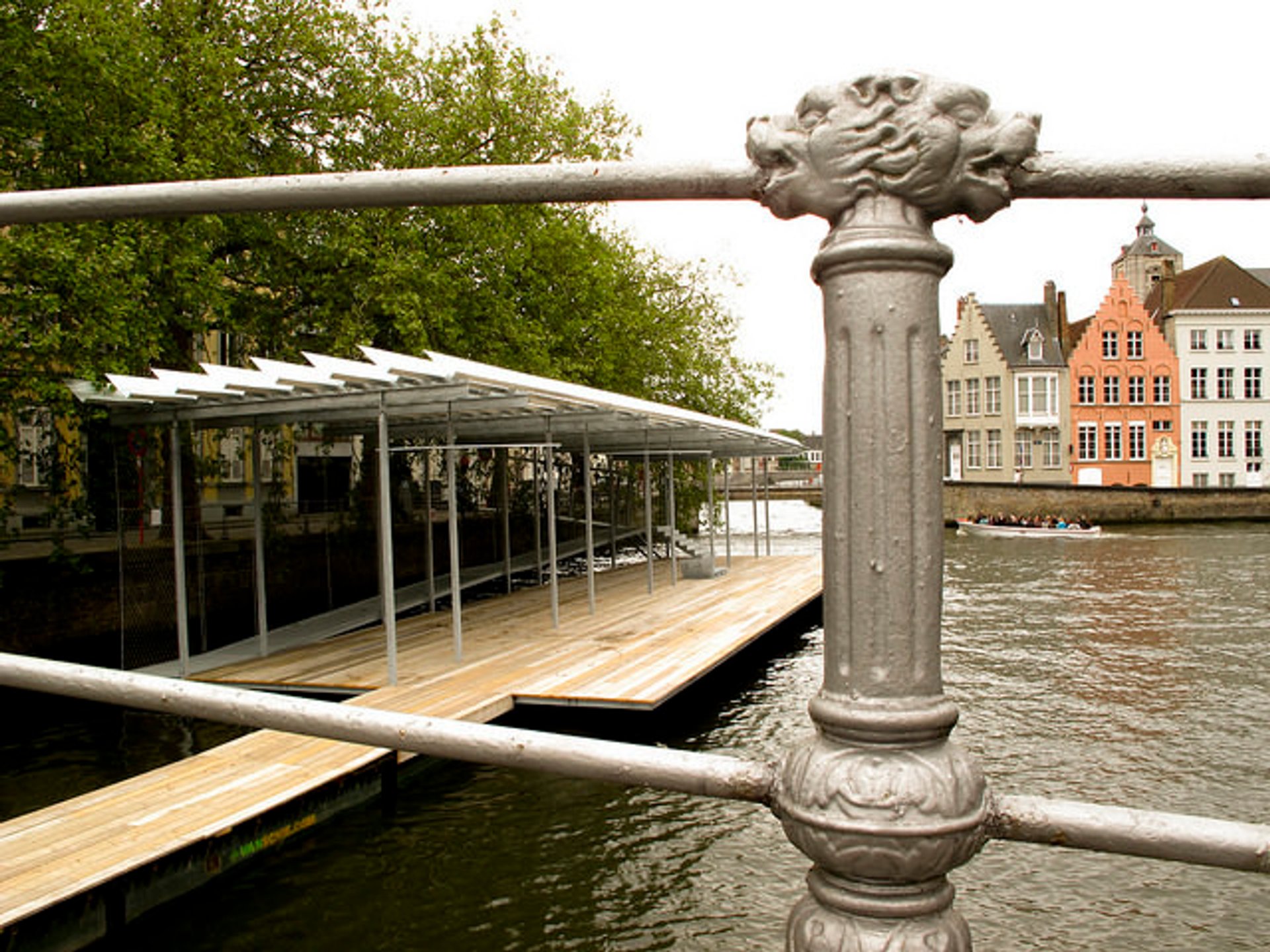 With this cautionary tale in mind, today’s curators took care to stir in just a few tangy sprinkles into an otherwise accessible recipe of public art. Take the Norwegian artist Vibeke Jensen’s octagonal, mirror-sided observation tower erected in stark modern contrast to the gothic centre market where it stands (1:1 Connect: DiamondScope, 2015). Housing a telescope, the structure offers a view of the iconic Belfry and brick plaza, which has been the site of public gawking since the beheading festivals of the Middle Ages.