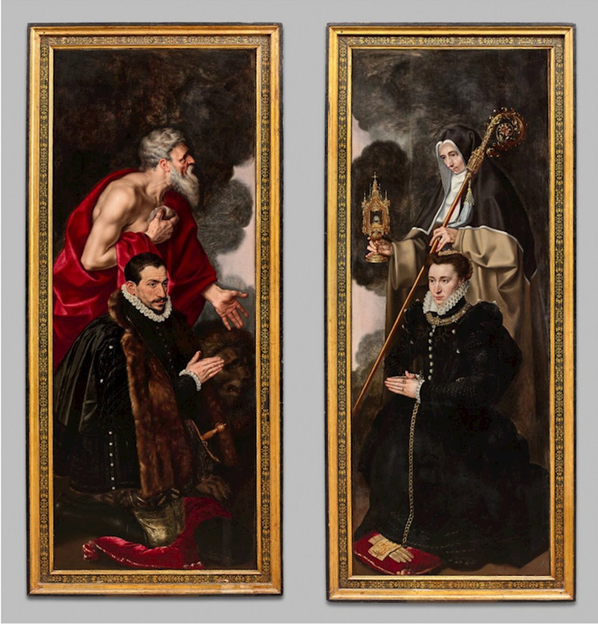 Adriaen Thomasz Key's wings of an altarpiece, showing male donor with Saint Jerome and a female donor with Saint Clare of Assisi, sold for €3m at Tefaf Maastricht Courtesy of Nicolás Cortés