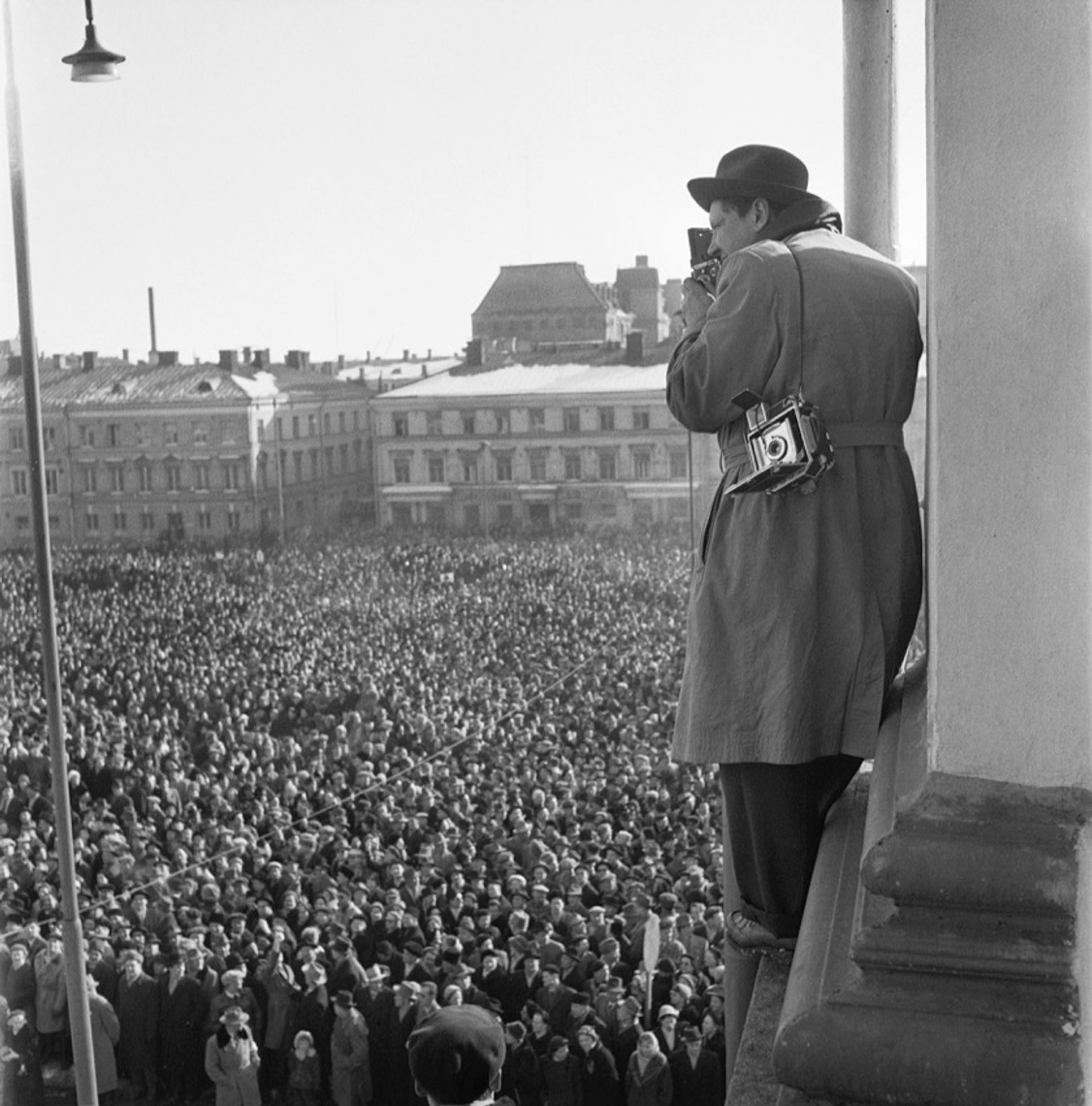 Demonstrators on Helsinki's Senate Square during the general strike of March 1956, one of 100 photographs on show at the National Museum of Finland Photo: U. A. Saarinen; courtesy of the National Museum of Finland