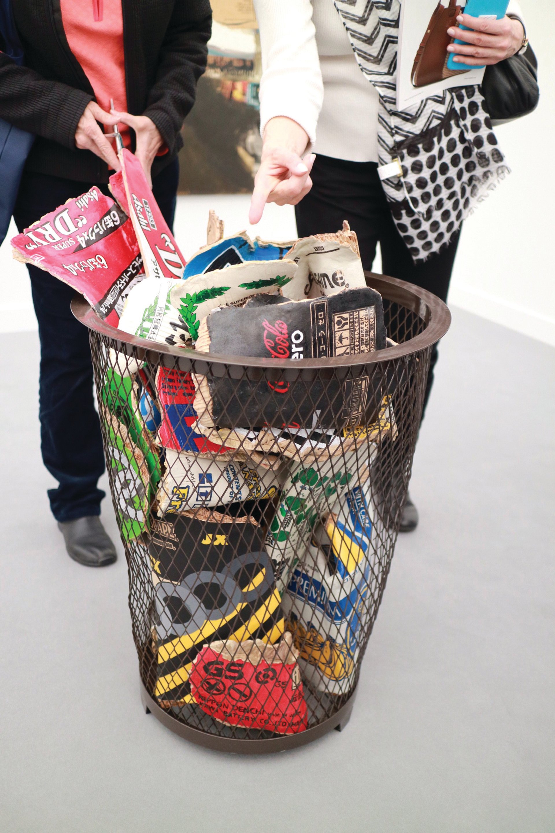 Kimiyo Mishima at Gallery Yamaki Fine Art The Japanese artist, who was born in Osaka in 1932, has a style that sits between Art Informel, Pop and Abstract Expressionism, but her “fear of being overwhelmed by information”, as Kamps puts it, is distinctly her own. The works on this stand were made between the 1960s and the present day, and include ceramic sculptures that resemble bundles of newspapers, overflowing bins and Japanese comic books. The works reflect how dispensable media and consumer goods can be, as well as Mishima’s paradoxical goal to make them permanent.