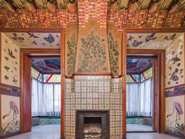 Fifteen lavishly decorated rooms by Gaudí have been restored with input from the descendants of its original tenants as well as extensive archival research. The designs show Gaudí's love of nature, from the stucco foliage ceilings to the menagerie of birds painted on the walls, and the decorative motifs of yellow zinnias on the tiles along the building’s exterior, inspired by the foliage on the buildings plot before work began. The house’s original layout has been only slightly modified to allow for its use as a museum. While the ground floor is now a visitors’ entrance, the space on the first and second floors has been adapted for the permanent collection, temporary exhibitions and short-term art installations.
