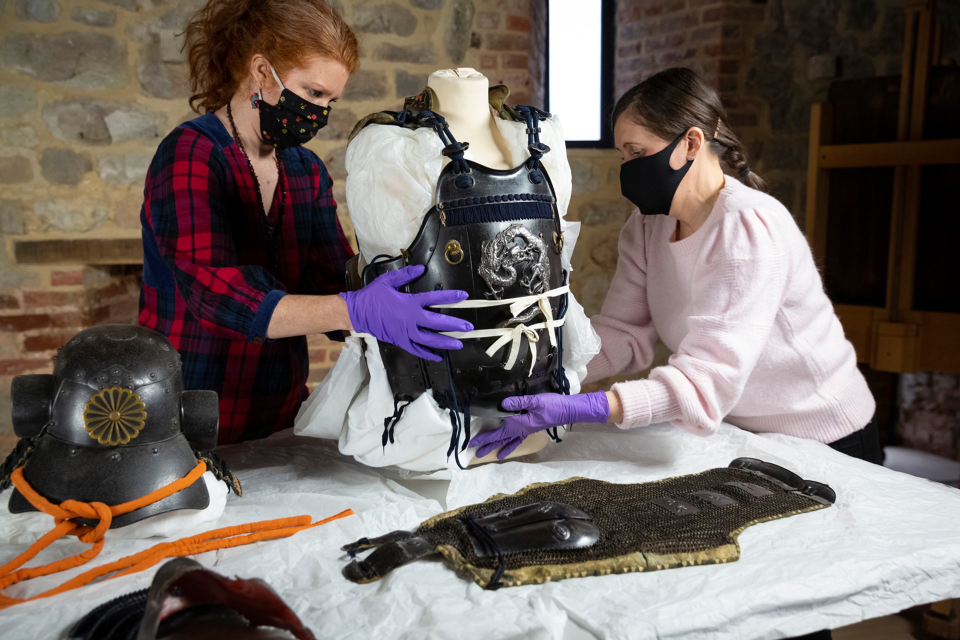A Samurai armour from Snowshill being worked on by conservators © National Trust; James Dobson