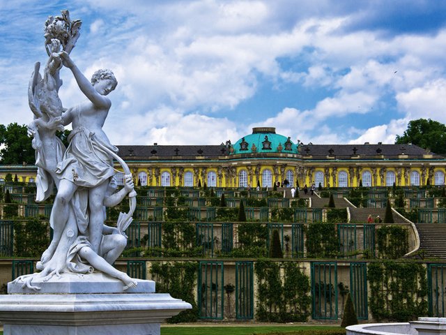While the palace exterior and surrounding terraces have already been restored, the interior is still undergoing a refit and the building is closed to the public, apart from special events and tours. In areas already declared safe, the park has been partially restored. With views of Potsdam’s skyline and the bridge and palace at Glienicke, Babelsberg is one of the most popular parks in Potsdam. It was designed by Peter Joseph Lenné, with later contributions from the famous landscape gardener Hermann Fürst von Pückler-Muskau.