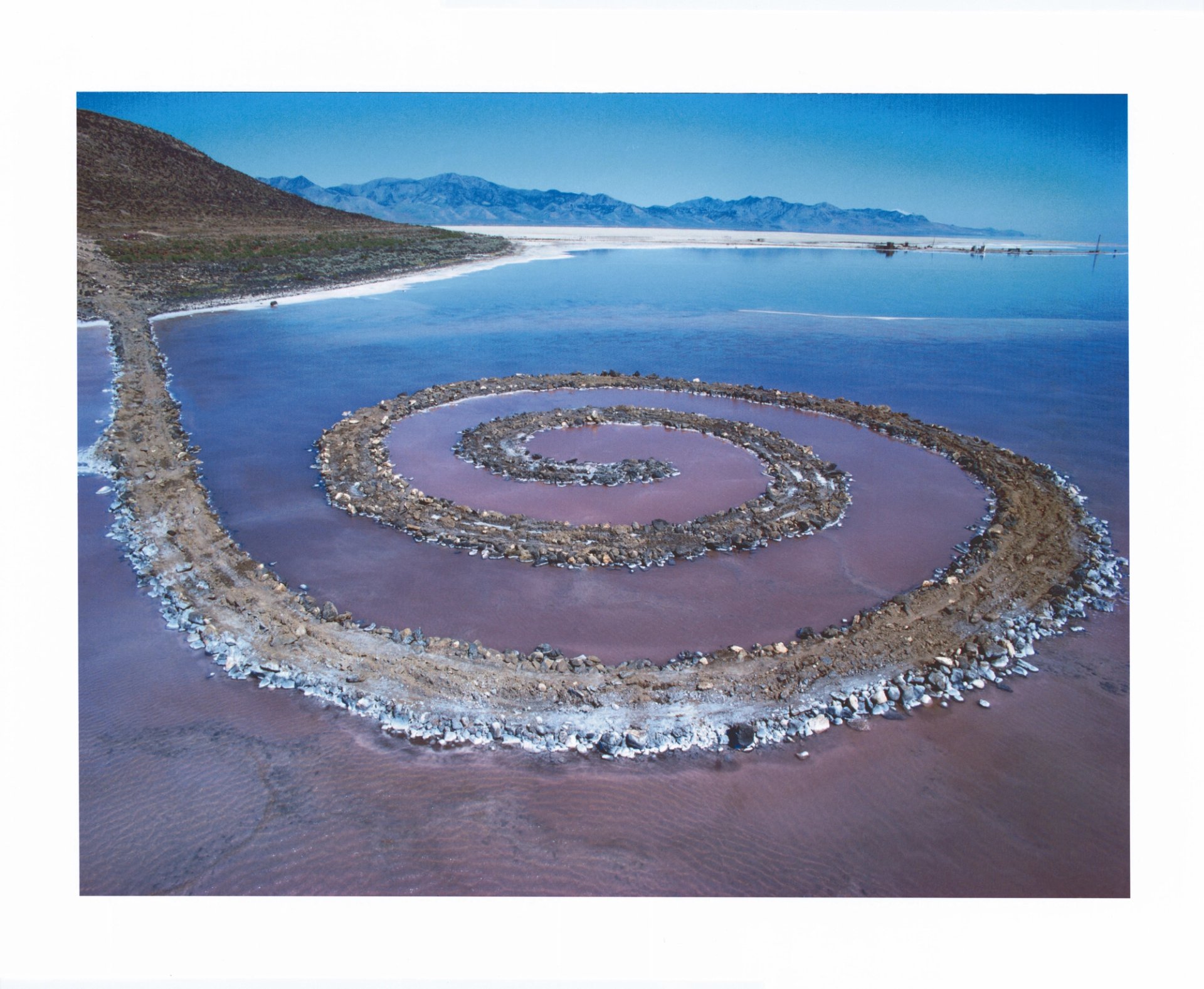 Spiral Jetty by Robert Smithson, photograph by Gianfranco Gorgoni Collection of the Nevada Museum of Art, The Altered Landscape, Carol Franc Buck Collection