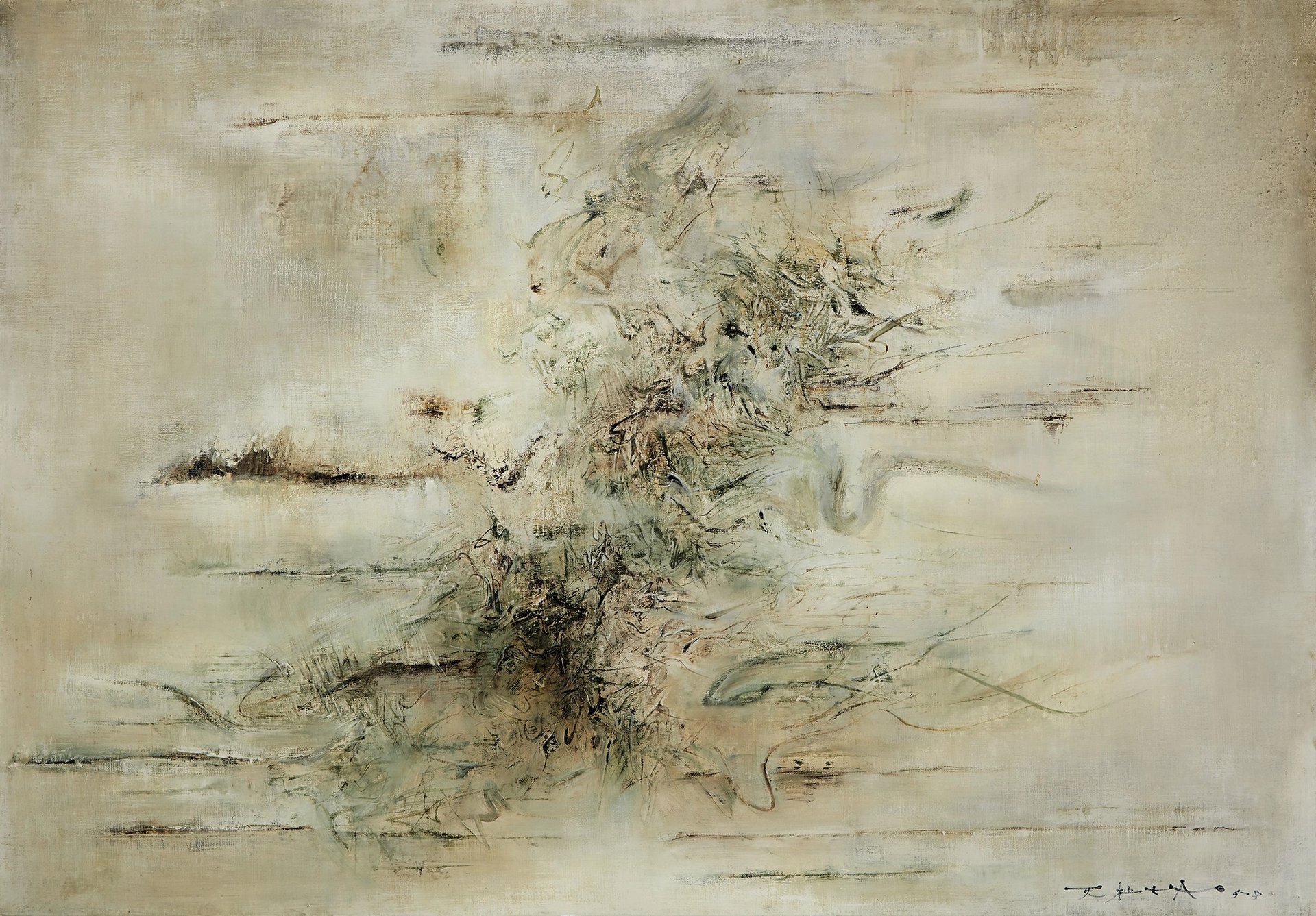 Sotheby’s announced on Tuesday (29 January) that it would offer Zao Wou-Ki’s large-scale 1958 untitled oil painting in its Hong Kong Modern art evening sale on 31 March, where it is poised to bring in HK$60m-HK$80m ($7.7m-$10m). Though certainly no small sum, this estimate seems almost conservative given the recent boom in the market for the Chinese-French abstract artist, especially in light of the work’s illustrious provenance—it is being deaccessioned by New York’s Solomon R. Guggenheim Museum, where it has been since it was gifted to the institution by the original buyer in 1964.