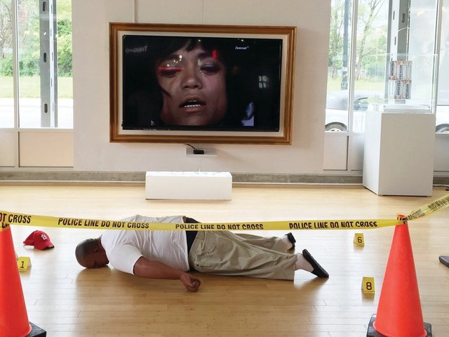 Among the works to go on view in The Abolitionists: Different Eyes Seeing the Same Reality is an installation that drew heated criticism this past summer when it appeared at the Guichard Gallery in Chicago. Angelitos Negros, by the New Orleans-based artist Ti-Rock Moore, includes a life-size replica of Michael Brown—the black teenager who was killed in Ferguson, Missouri, in 2014—positioned face-down on the floor and surrounded by police tape. “Moore’s ‘art’ is not original; it is a crude plagiarism of [police officer] Darren Wilson’s brutality, nothing more,” wrote the cultural critic Kirsten West Savali on the website The Root in July.