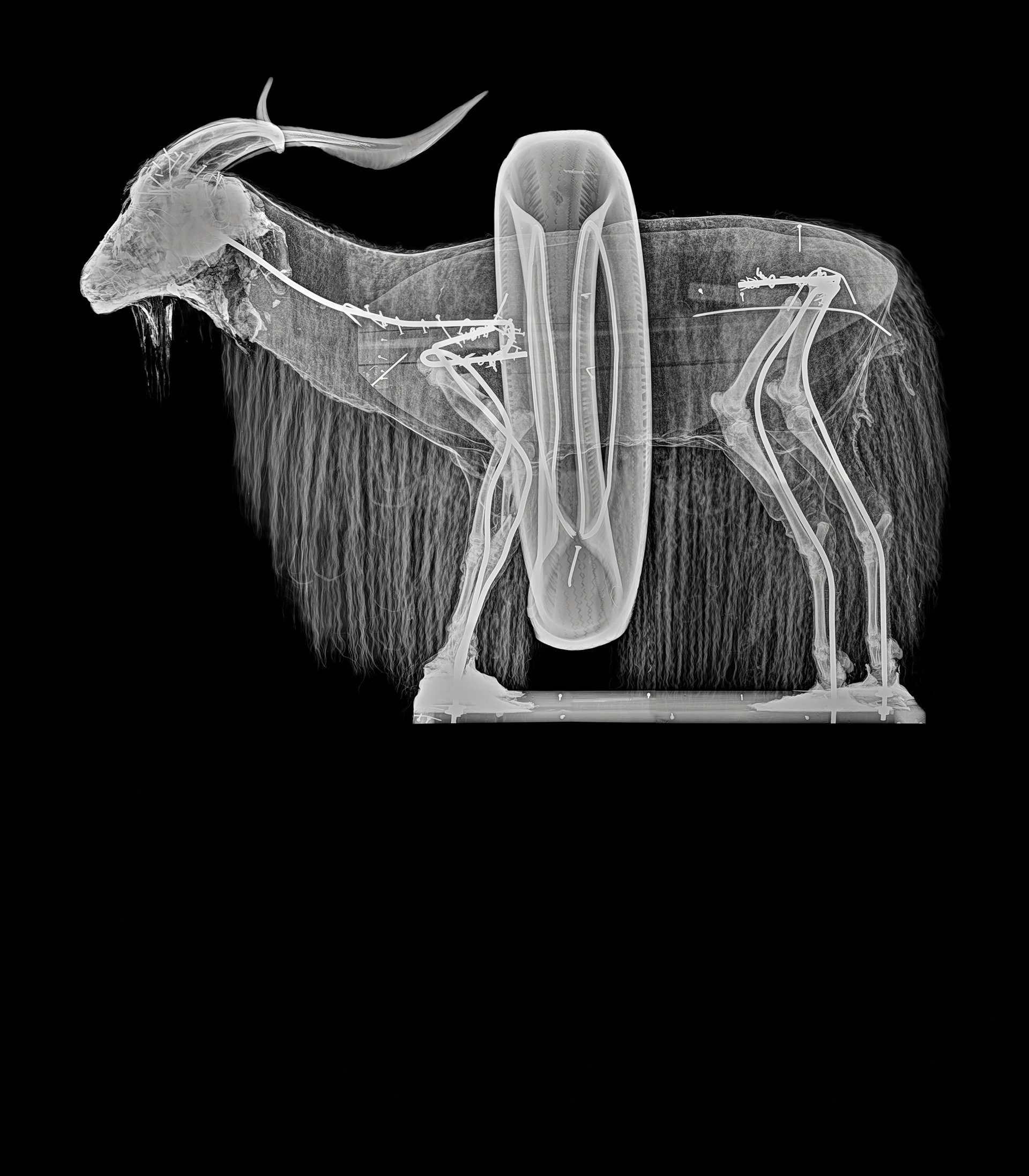 X-rays also confirmed rumours that the goat’s leg is fractured, but that an iron structure holds it in position and so the break poses no risk to the stability of the work. The conservators also note that although the rubber tire around the goat’s middle is heavy and “puts a lot of pressure” on its internal structure, overall its “inner construction is fairly stable” and therefore is safe to travel in a newly built transport crate that “supports the goat and protects [it] against shock and vibration hazards”. However, they stress that it is still a very fragile work “and travel will always be limited and subject to consideration”.
