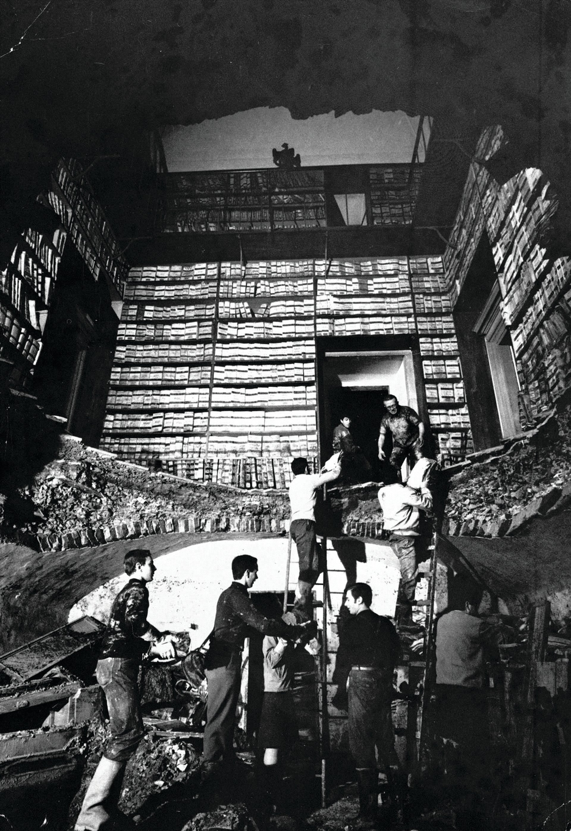 Thousands of Jewish books and scrolls in the Florence synagogue archive were damaged. The Foundation for Jewish Cultural Heritage in Italy and the Biblioteca Nazionale Centrale di Firenze have co-organised an exhibition reuniting many of them, with sponsorship from Ente Cassa di Risparmio di Firenze bank.