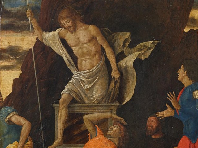 Valagussa believes that the divided paintings may have formed the wing of a polyptych altarpiece. One theory under consideration—for a show Valagussa is planning next year to reunite the Resurrection and the Descent—is that the Bergamo panel relates to the Mantegna triptych in the Uffizi in Florence, which was itself reunited in the 19th century.